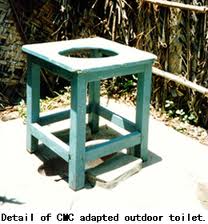 Neste caso o toilet eh a ceu aberto e foi feita uma armacao de madeira para a pessoa sentar-se.